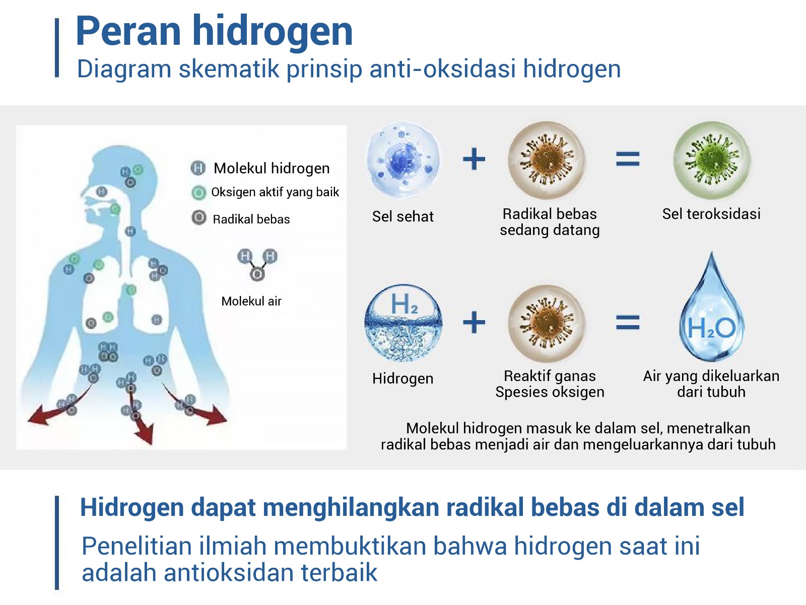 Hidrogen memberikan sifat Antioksidan, Anti Inflamasi, dan Sitoprotektif yang bermanfaat bagi sel
